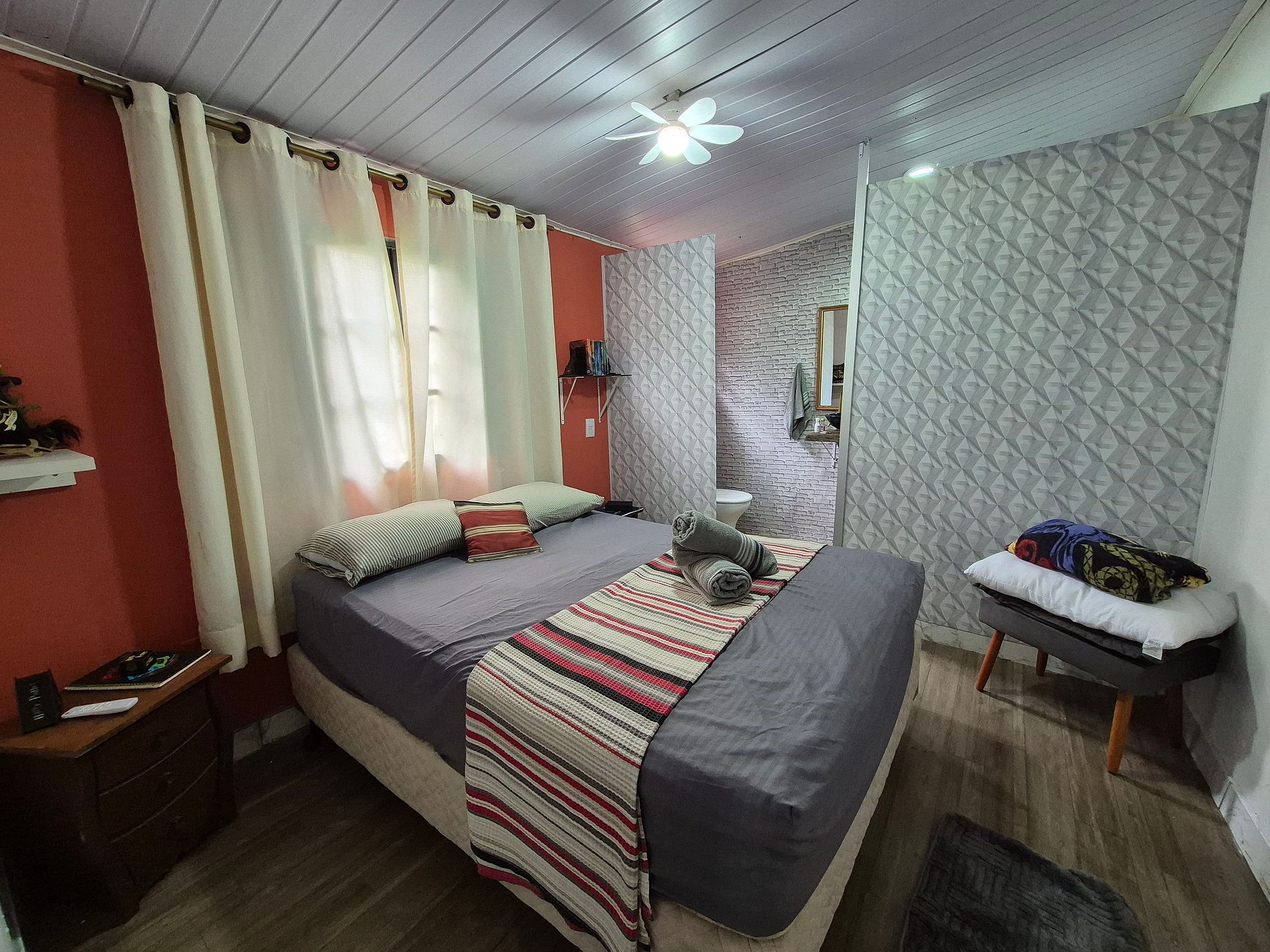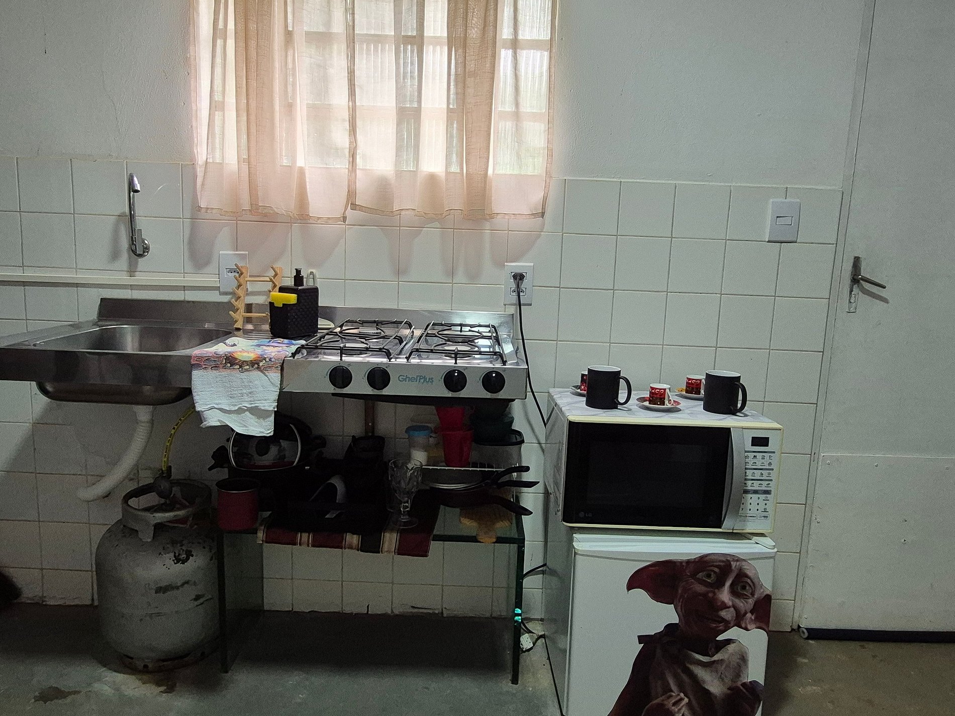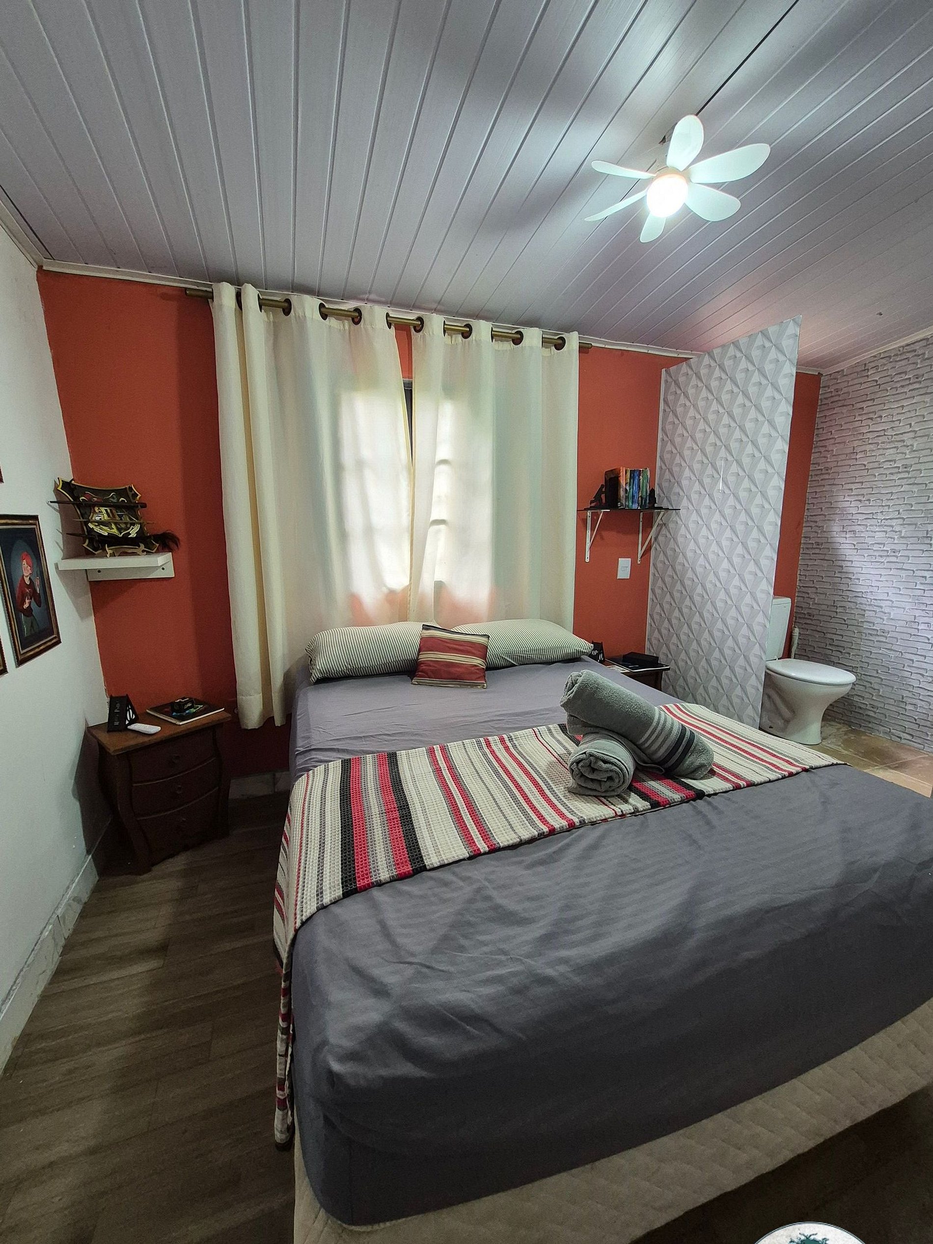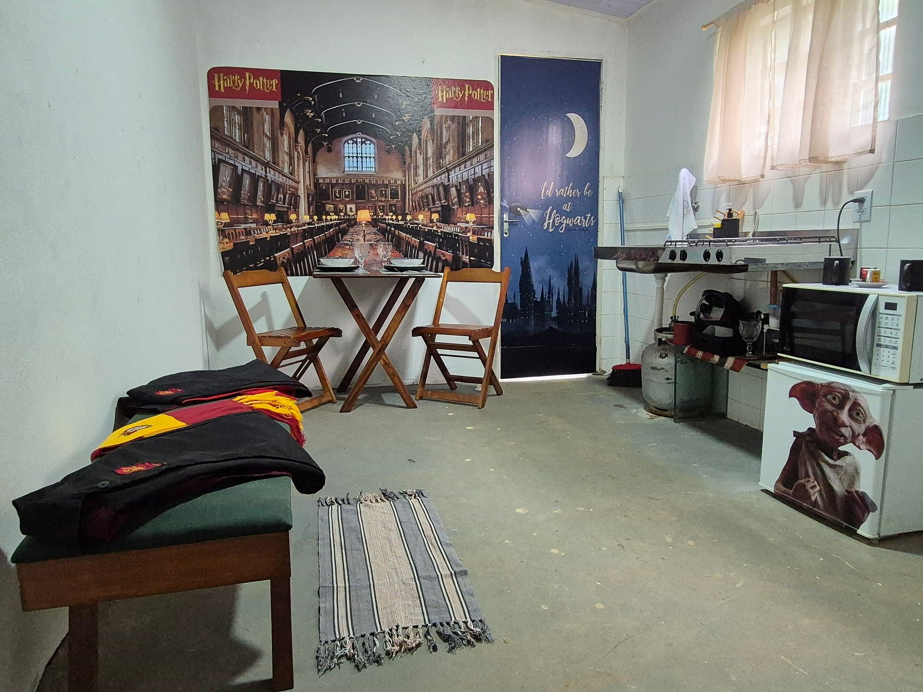 Casa temática do Harry Potter, com uma cama de casal + 1 puff vira colchão de solteiro, com cozinha e varanda temáticas, remetendo ao salão de Hogwarts e à Plataforma 9 3/4; Fica situada em um sítio-pousada, repleto de natureza, com atrativos como escorrega no lago, caiaques, stand up, slack line, piscina, cascata, e muita paz.... servimos um delicioso café da manhã para se deliciar com calma, em meio à natureza. Lago com peixes mansos (alimente nossas carpas).
